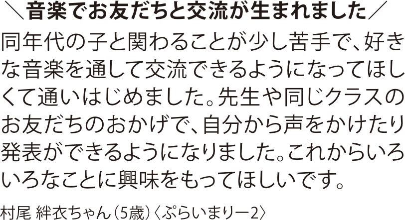 ホーム > お客様の声 > お客様の声|音楽教室 > ワイヤーママ2026年3月号より